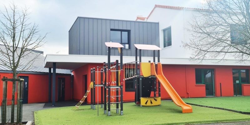 Le projet propose une architecture contemporaine avec un ensemble de 3 volumes continus en toiture terrasse. Le volume central est marqué par un enduit matricé vert en surélévation. Les façades sont revêtues de panneaux en bois de différentes couleurs et de largeurs aléatoires pour apporter de la verticalité à l’ensemble.Des ambiances intérieures colorées