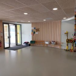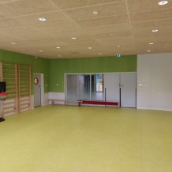 Le projet est la création d’une grande salle polyvalente modulable en 2 salles distinctes avec un grand hall d’accueil. L’architecture se présente sous 2 volumes différents : - le volume de la salle polyvalente surplombe le projet et contraste dans le paysage boisé avec sa couleur orange brique. Il se présente comme un signal fort dans la commune. - Le second volume encadre le premier volume avec son profil aléatoire et cet effet « d’architecture dépliée ». Avec sa finition en enduit matricé bois, il s’inscrit dans son environnement naturel et accueille l’usager avec son vaste auvent. A l’intérieur, les espaces se composent d’une grande salle modulable de 300m² avec sa scène et d’un grand hall de 80m². L’aménagement d’un office et de loges permettent la pluri-diversité des manifestations de la construction.Un nouvel espace urbain